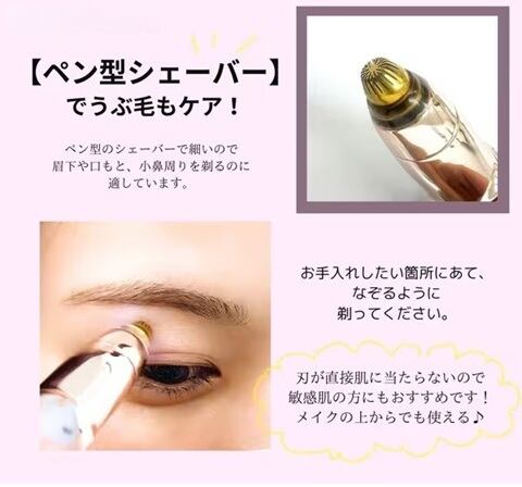 ◎ペン先のように細くなっているため剃りにくい眉毛周りや小鼻周り、口元などにも使いやすい