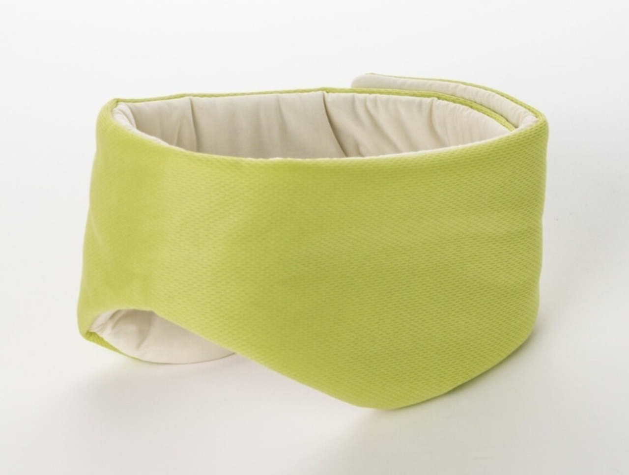 耳掛けタイプと違い、しっかりと目もとから頭全体をくるんでマジックテープで止めて使用出来ます