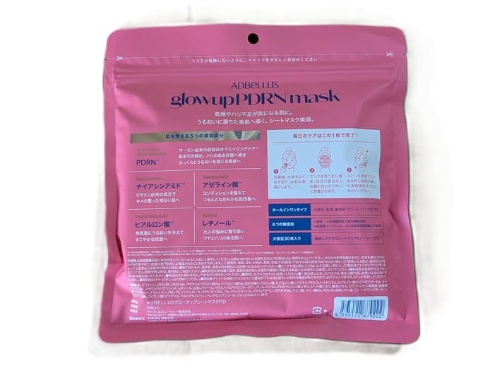 PDRN、ナイアシンアミド、ヒアルロン酸配合の30枚入りシートマスクで、簡単にスキンケアが可能