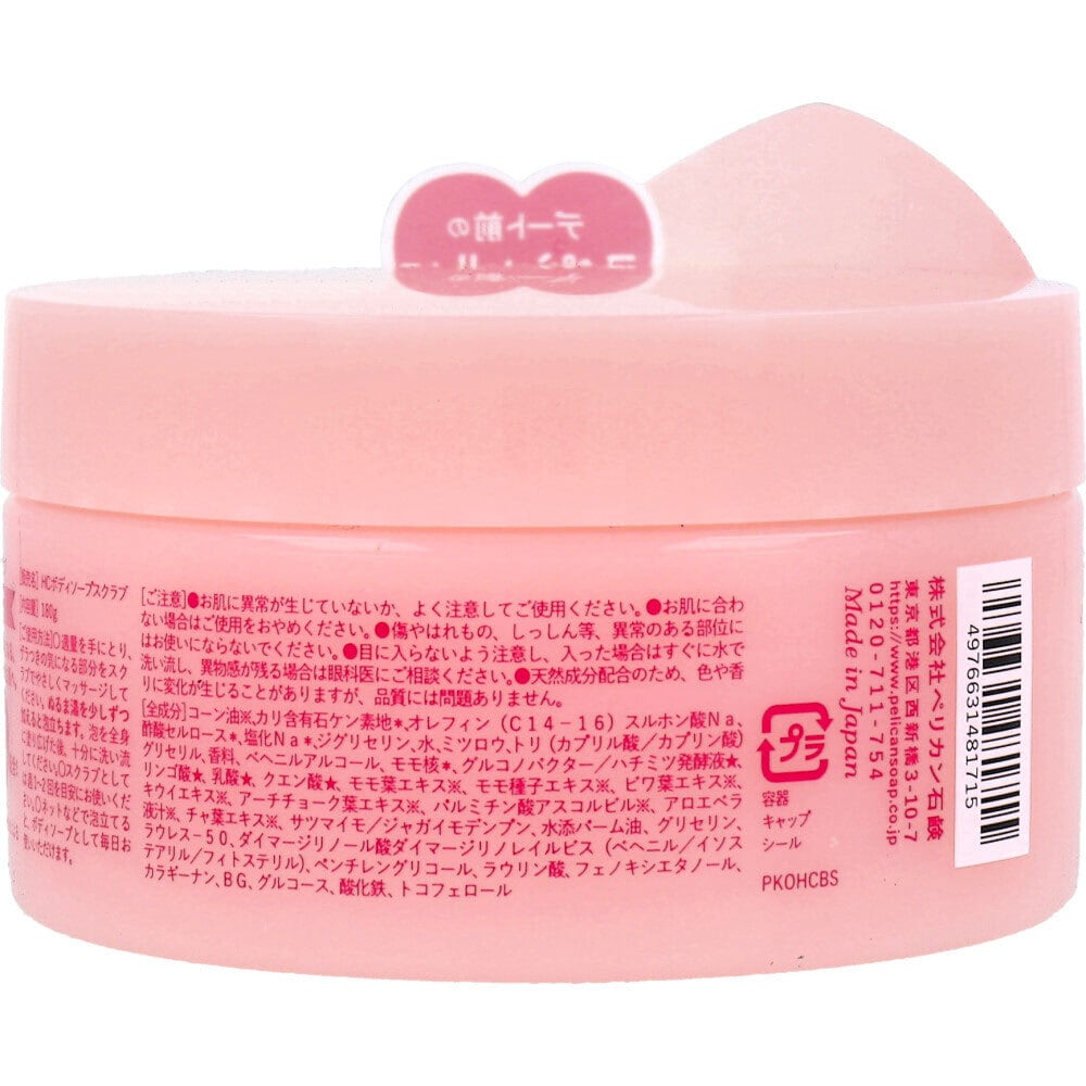 全成分:コーン油、カリ含有石ケン素地、オレフィン(C14-16)スルホン酸Na、酢酸セルロース、塩化Na、ジグリセリン、水、ミツロウ、トリ(カプリル酸/カプリン酸)グリセリル、香料、ベヘニルアルコール、モモ核、グルコノバクター/ハチミツ発酵液、リンゴ酸、乳酸、クエン酸、モモ葉エキス、モモ種子エキス、ビワ葉エキス、キウイエキス、アーチチョーク葉エキス、パルミチン酸アスコルビル、アロエベラ液汁、チャ葉エキス、サツマイモ/ジャガイモデンプン、水添パーム油、グリセリン、ラウレス-50、ダイマージリノール酸ダイマージリノレイルビス(ベヘニル/イソステアリル/フィトステリル)、ペンチレングリコール、ラウリン酸、フェノキシエタノール、カラギーナン、BG、グルコース、酸化鉄、トコフェロール